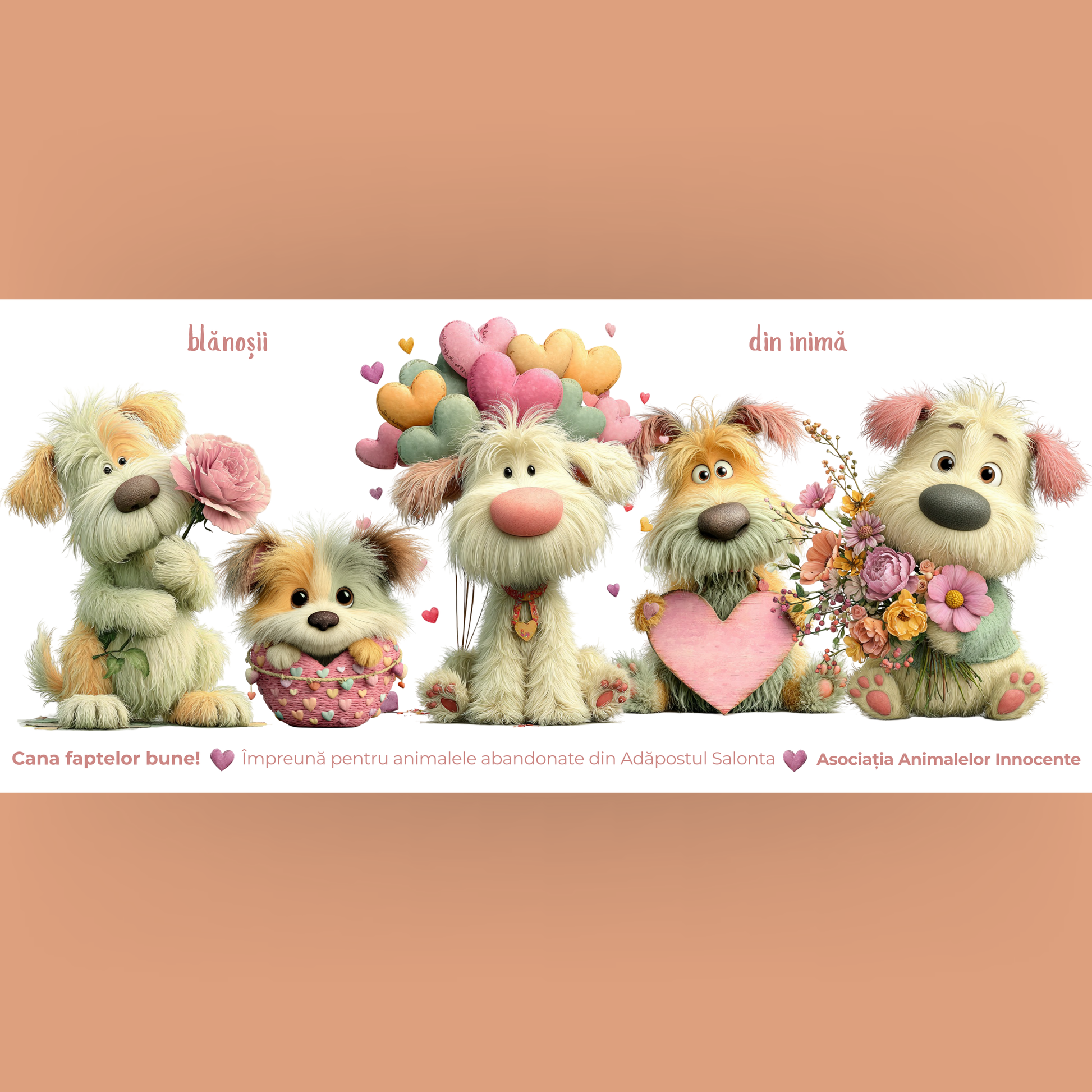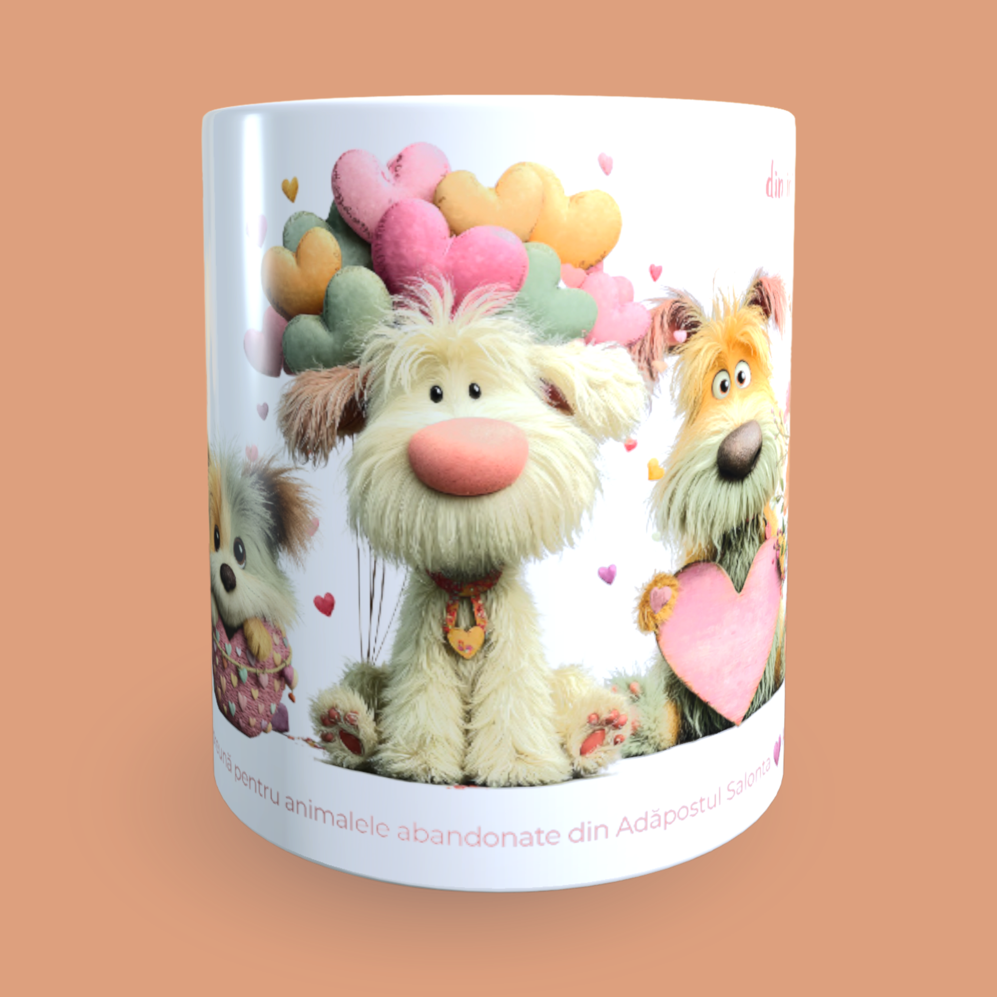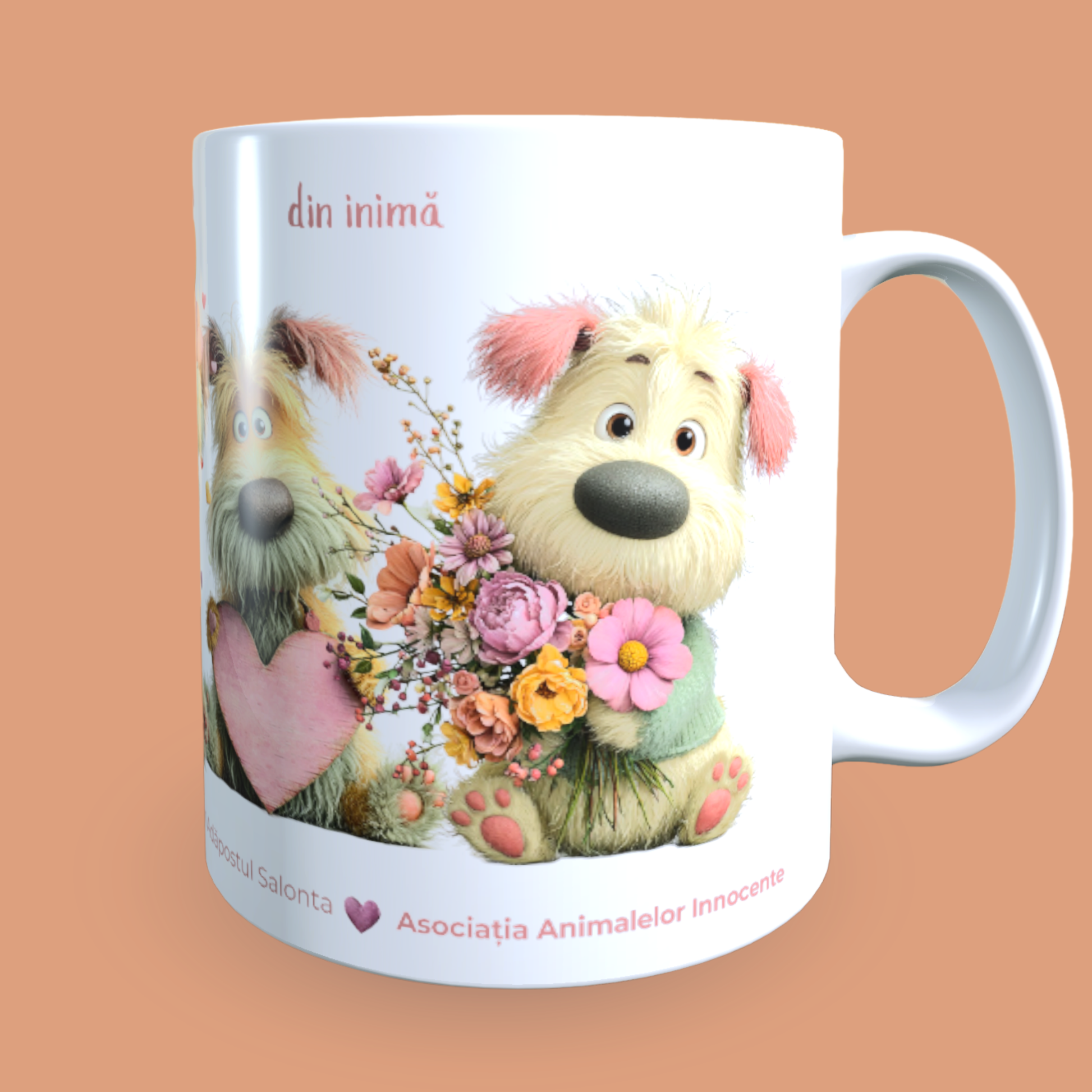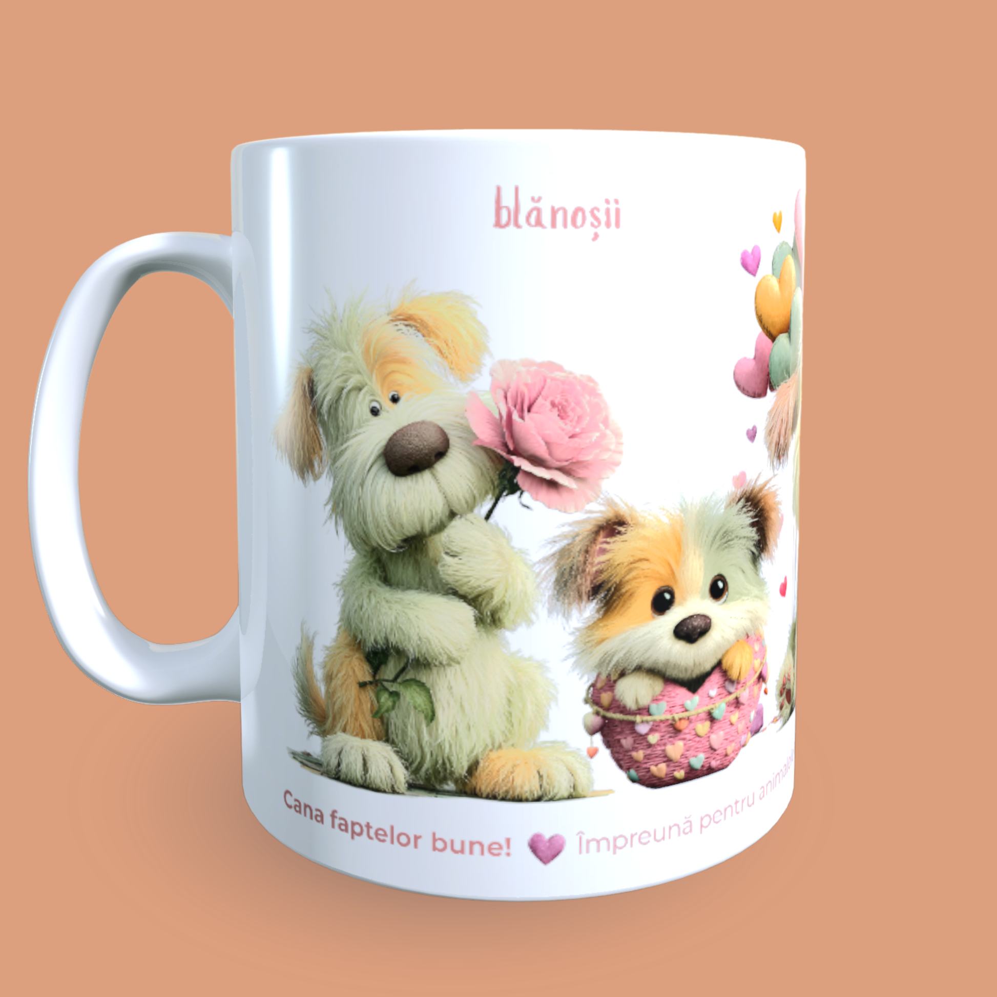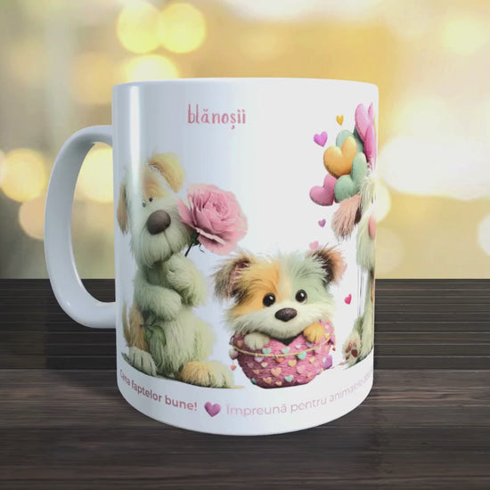 Cană caritabilă „Din inimă” – Blănoșii cu flori și inimioare