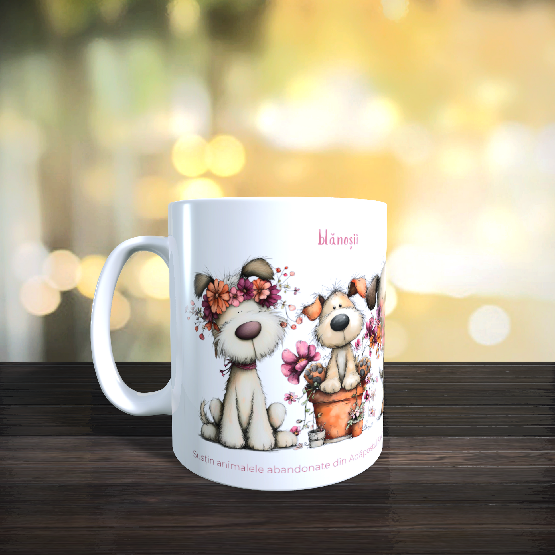 Din fiecare cană vândută, MoonPrint direcționează 30 lei către câinii din Adăpostul Salonta, în parteneriat cu Asociația Animalelor Innocente.